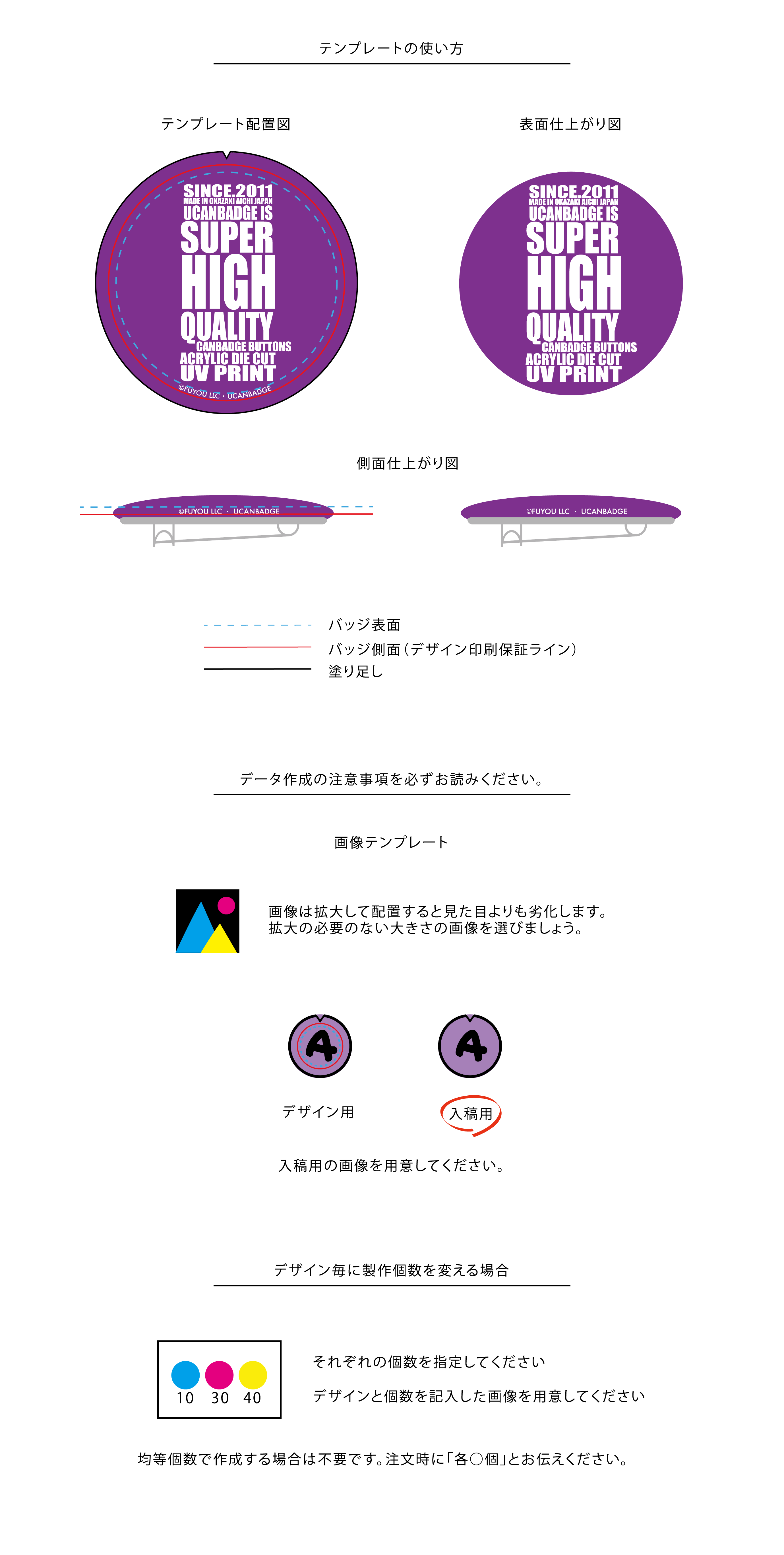 画像だけで缶バッジが作れるテンプレート不要プランもございます。(無料〜)